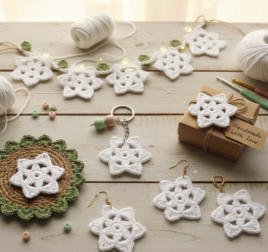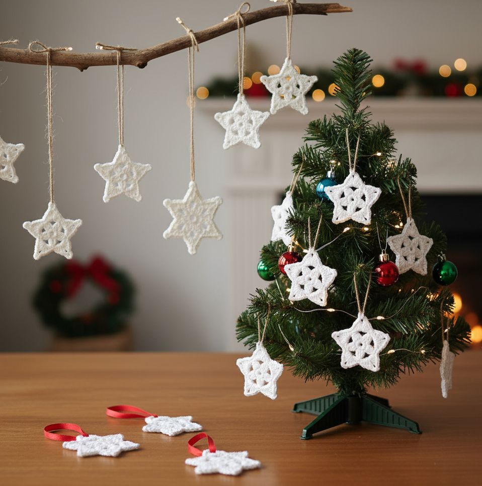 RITIKA CRAFT® Woolen Crochet Star Ornament for Christmas Tree – Handmade 2.75 in. Holiday Decor(1 pc)