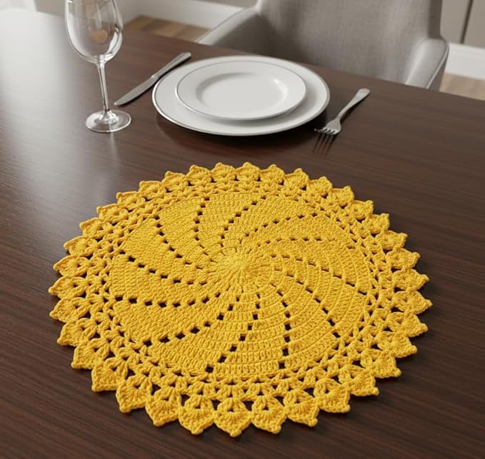 RITIKA Craft® Handmade Crochet Doily/placemat/Table mat (Yellow) 15 inch