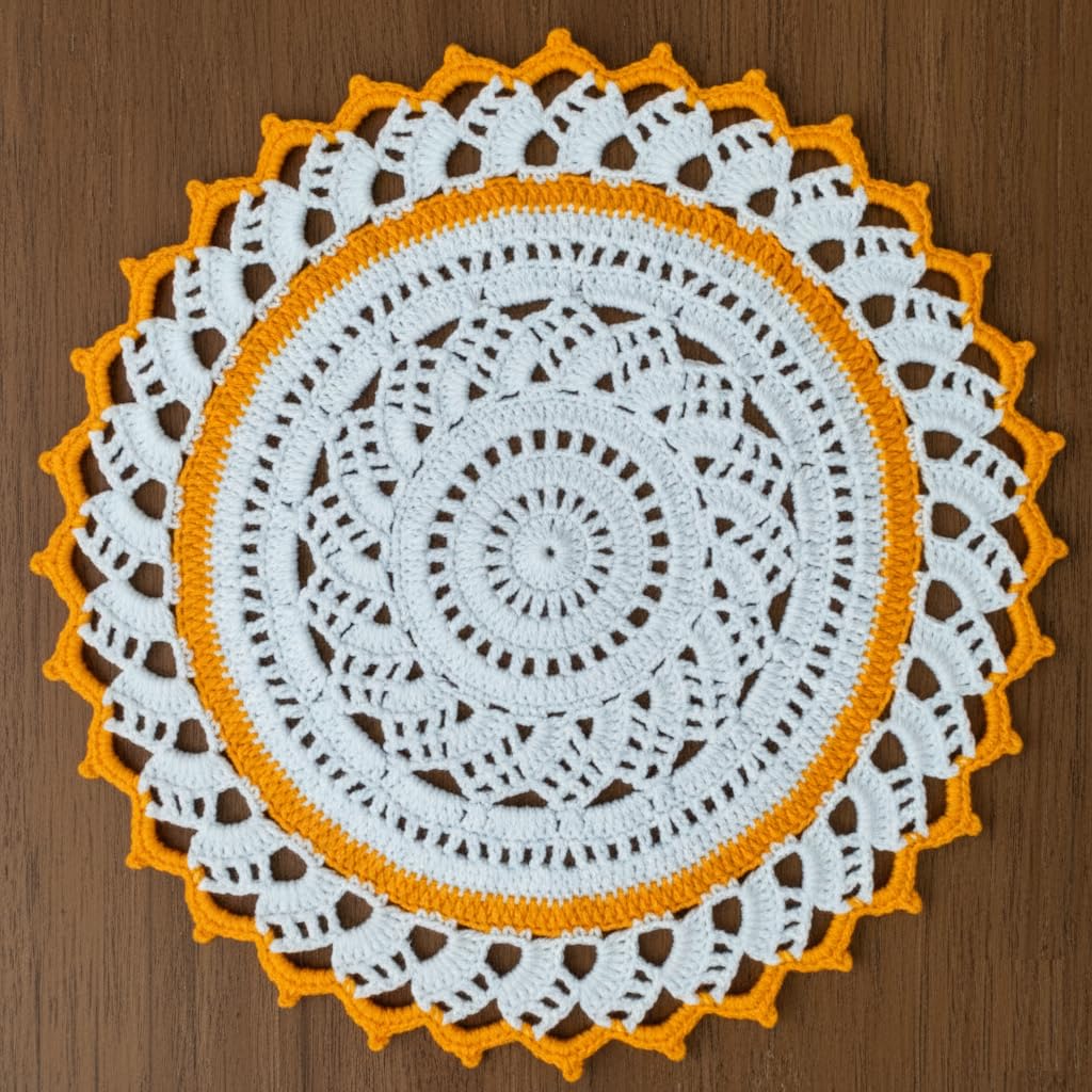 RITIKA woolen Handmade crochet table mat 15 inch White-Yellow